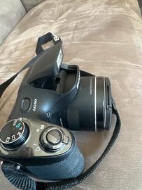 Come Nuova La macchina è in ottime condizioni estetico-funzionali, usata pochissimo e tenuta sempre con cura. Caratteristiche principali: • Super Zoom Ottico 35x: Ti permette di fotografare soggetti lontanissimi (animali, dettagli architettonici, luna) con una nitidezza incredibile. • Sensore da 20.1 Megapixel: Foto dettagliate e perfette anche per stampe di grandi dimensioni. • Stabilizzatore Ottico Optical SteadyShot: Riduce al minimo il mosso, fondamentale quando si usa molto lo zoom o si scatta a mano libera. • Video in HD: Registra filmati chiari e fluidi con un tasto dedicato. • Design Ergonomico: Corpo macchina stile Reflex che garantisce una presa solida e professionale, ma molto più leggera da trasportare. • Alimentazione AA: Funziona con 4 comuni pile stilo (consiglio le ricaricabili), comodissimo in viaggio perché non rimarrai mai a secco di energia. Cosa include l'offerta: • Corpo macchina Sony DSC-H300. • Tappo copri-obiettivo originale. • Tracolla originale Sony e Custodia Originale