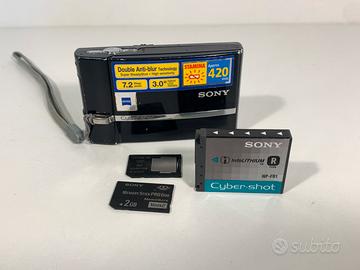 Sony Cyber-shot DSC-T30 Blu + 2 Memory Stick Fotocamera digitale Sony Cyber-shot DSC-T30 blu scuro perfettamente funzionante con segni e alcuni graffi da normale utilizzo come da foto ✔️La fotocamera è stata testata in tutte le sue componenti per garantire piena funzionalità e sicurezza operativa. Il vetrino del display è leggermente impolverato e sbiadito esternamente, condizione abbastanza comune su questi modelli: non copre l’immagine e non compromette l’utilizzo, come da foto. 📦💨Spedizione rapida e tracciata con imballaggio ben protetto e isolato Compatta della serie Cyber-shot con sensore CCD da 7.2MP obiettivo Carl Zeiss zoom ottico 3x e stabilizzazione Super SteadyShot Venduta con 2 Memory Stick Sony ❎Caricatore non incluso – facilmente reperibile o utilizzabile con caricatore universale. ✔️La fotocamera arriva carica e pronta per essere utilizzata Per info, altre foto o video scrivimi pure.