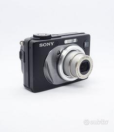 Sony Cyber-shot DSC-W12, la versione "Special Edition" in elegante finitura nera satinata. Questo modello è diventato un oggetto di culto per gli amanti della "vintage photography" degli anni 2000 per la sua resa cromatica e la qualità costruttiva superiore.
