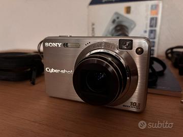 Macchina fotografica digitale Sony Cyber-shot DSC-W170 in ottime condizioni, completa di scatola originale, istruzioni piu’ accessori. Compatta. leggera e intuitiva. Lenti Zeiss, Full HD 1080p, 10.1 Megapixel, zoom ottico 5x, zoom digitale 10x, grandangolo 28mm. Regolazioni sia manuali che automatiche. Fornisco in aggiunta: •Custodia morbida compatta •Scheda SD Sony-Stick Duo 8GB •Adattatore Sony Scheda SD •Cavo collegamento TV e USB •2 batterie •2 caricabatteria con cavi •2 cinturini (uno corto, uno lungo con clip per rimuoverlo facilmente) No perditempo, affaristi etc. Preferisco scambio a mano, spedizione possibile ma a rischio e carico acquirente