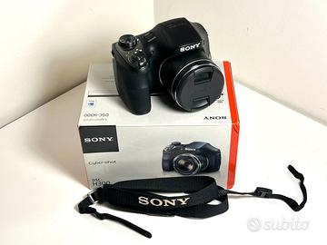 Sony Cyber-shot H300, Zoom ottico 35x, 20.1 Mpx, scatola originale. La macchina fotografica è perfettamente funzionante e dotata di scatola originale. Funziona con batterie AA (non comprese). Sensore: Super HAD CCD tipo 1/2,3″, circa 20,1 Megapixel Risoluzione immagine massima: 5152 × 3864 pixel Zoom ottico: 35× Zoom digitale (foto): fino a circa 280× (VGA) Zoom digitale (video): circa 70× Lunghezza focale obiettivo: f = 4,5–157,5 mm (equiv. ~25–875 mm) Apertura: F3,0 (wide) – F5,9 (tele) LCD: 3″ TFT LCD con 460.800 punti Messa a fuoco: autofocus con modalità multiple e rilevamento volto/sorriso Misurazione luce: multi-pattern, centro ponderato, spot ISO (foto): 80–3200 Velocità otturatore: fino a 1/1500 s / fino a 30 s (in modalità manuale) Stabilizzazione: Optical SteadyShot Flash: integrato con varie modalità (auto, lenta, off) Supporto memoria: Memory Stick Duo / SD / SDHC / SDXC Interfacce: USB 2.0, Multi AV/USB Alimentazione: 4 × batterie AA (non comprese) Autonomia batteria: circa 350 scatti / 175 minuti Dimensioni (circa): 127,5 × 89 × 91,7 mm Peso (circa): 495 g (solo corpo) / ~590 g con batterie e scheda