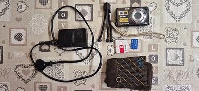 Macchina fotografica digitale compatta Sony, piccola e facile da usare.