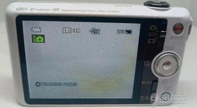 Fotocamera digitale Sony Cybershot DSC-WX80, colore bianco, elegante e compatta, perfetta per viaggi, foto di tutti i giorni o come regalo per chi ama la fotografia facile e veloce.