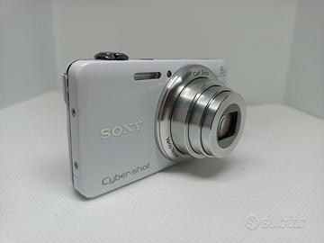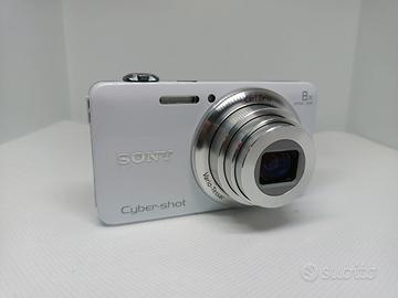 Fotocamera Sony Cybershot DSC-WX80 con batteria e cavo di ricarica. Flash funzionante. Si riceve ciò che è in foto. Caratteristiche: Tipologia fotocamera: Fotocamera compatta, Megapixel: 16,2 MP, Dimensione del sensore di immagine: 1/2.3", Tipo sensore: CMOS, Risoluzione massima immagine: 4608 x 3456 Pixel. Sensibilità ISO (max): 12800. Zoom ottico: 8x, Zoom digitale: 32x, Lunghezza focale: 4.5 - 36 mm. Velocità massima dell'otturatore della fotocamera: 1/1600 s. Tipologia HD: Full HD, Risoluzione massima video: 1920 x 1080 Pixel. Dimensioni schermo: 6,86 cm (2.7"). Peso: 108 g. Colore del prodotto: Bianco Disponibili foto di esempio. NO GARANZIA, NO RESI.