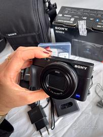 Vendo Sony RX100 VII - Fotocamera Digitale Compatta a causa di scarso utilizzo. Possiede un sensore da 1.0'', elevate prestazioni di AF, 4K HDR, ed una velocità performante 20 fps. È un’ottima compagna di viaggio, leggera e maneggevole, senza rinunciare alla qualità. Insieme alla macchina fotogtafica completa di ogni suo componente originale (scatola originale, batteria oroginale sony, manuale di istruzioni) includo in regalo tre batterie ricaricabili, un supporto per caricare 3 batterie contemporaneamente, una borsa originale sony ed un telecomando Bluetooth per scattare a distanza.