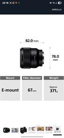 Vendo obiettivo Sony FE 85mm F1.8 (SEL85F18) in condizioni pari al nuovo, compatibile con fotocamere Sony full-frame e APS-C con attacco E-Mount (come Sony A7, A7R, A7 III, A7 IV, A9, ecc).