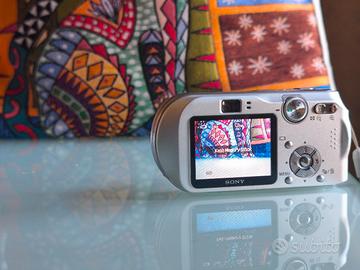 Compatta, elegante, con le tante modalità scena dedicate, è la fotocamera perfetta da portare in tasca per immortalare i tuoi ricordi. Testata e perfettamente funzionante. Dotata di 7,2 megapixel, ottica Carl Zeiss, zoom ottico 3x, flash integrato, offre immagini nitide, luminose e ricche di dettagli. Il processore Real Imaging garantisce scatti fluidi e di alta qualità, mentre l’elevata sensibilità ISO permette di ottenere foto chiare anche in condizioni di scarsa illuminazione. Normali segni di usura Viene fornita completa di batteria originale Sony ma senza caricabatterie e senza scheda SD (che posso consigliarvi) acquistabili per pochi euro su internet. Ideale per fotografi e content creator dal gusto retrò che cercano qualità e stile a un prezzo accessibile. Tag: point and shoot, y2k, compatta, fotocamera vintage, fotocamera digitale