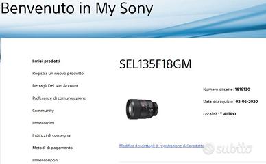 Vendo obiettivo Sony 135 mm f.1,8 GM - Sony Italia - causa inutilizzo (ho 70-200 e 50-150 GM). Preferisco consegna a mano zona Monza - nord Milano