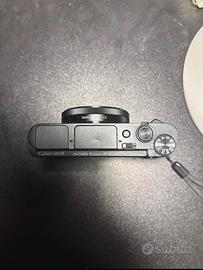 fotocamera sony con inclusa custodia tracolla, SD card, 2 batterie di scorta con caricabatterie e carica batterie.