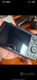 LEGGERE tutta la descrizione! Macchina fotografica tenuta in buone condizioni. Viene venduta con scatola e accessori presenti in foto. Piccoli segni di usura sullo schermo e difetto di inceppamento qualche volta su levetta dello zoom ma in entrambi i casi non precludono il funzionamento della fotocamera.