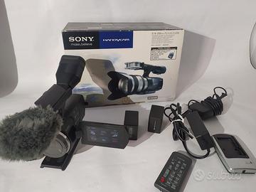 kit professionale Sony NEX-VG20E in condizioni perfette, conservato con la massima cura e completo di accessori essenziali per riprese di lunga durata e alta qualità. Ideale per videomaker, documentaristi, piccole produzioni o appassionati che cercano una fotocamera video versatile con sensore APS-C e intercambiabilità ottiche.