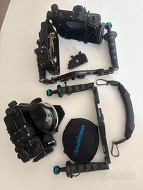 nr.2 Base con maniglia regolabile con sfere, perfetta per compatte e mirrorless o action cam. Maniglie anatomiche rivestite in morbida gomma. Due viti passo fotografico di fissaggio.