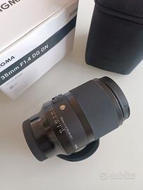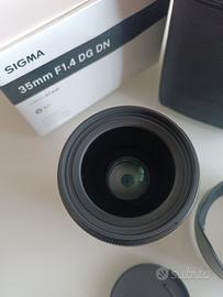 Obiettivo fisso per Sony e-mount Sigma 35 mm f/1.4 DG DN Art, come nuovo, vendo a malincuore per inutilizzo. Lenti perfette, funzionamento ottimo, completo di scatola originale, sacca, paraluce, tappi.