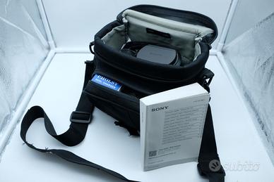Compresi ci sono la sua scatola originale, il manale in italiano e altre lingue, 4 batterie, fra le quali due Patona Protect, un caricabatterie Pholsy a due posti, con cavo e alimentatore acquistato a parte (Sony forniva solo il cavo USB), due schede di memoria SD da 16GB e 32GB, una borsa per il trasporto di tutto.