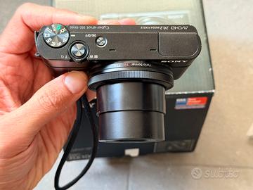 Vendo Sony RX100 in ottime condizioni, perfettamente funzionante. Compatta di alta qualità con sensore da 1”, 20.2 Mega Pixels, con zoom ideale per chi cerca una macchina sempre con sé ma con resa fotografica superiore allo smartphone. Incluso: - batteria originale Sony - batteria aggiuntiva Patona - cavo di ricarica micro usb - cinturino da polso Sony - ganci per eventuale tracolla (tracolla non inclusa) - scatola originale con manuale di istruzioni Perfetta come prima macchina o come compatta da viaggio. Vendo per inutilizzo.