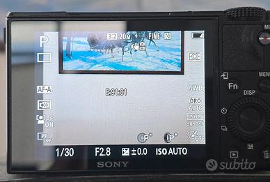 Vendo Sony rx100 VI ad un prezzo introvabile (circa 200 euro in meno del valore di mercato) ,causa inutilizzo e flash al momento non funzionante . E' in ottime condizioni ,con eccezionale ottica Carl Zeiss 24-200 f2,8-4,5 ad altissime prestazioni, equivalenti o superiori a quelle di reflex di fascia medio-alta. Dettagli perfetti anche a 1600- 3200 iso con "grana" praticamente assente.....foto notturne mozzafiato..nitidezza estrema...... ottima anche per i filmati sia di giorno che di notte dato il sensore di altissima qualità... Un vero gioiello in miniatura... Il flash non funzionante , ma riparabile, e' segnalato dalla piccola scritta lampeggiante "E:91:01" sul display. Per il resto perfettamente operativa. Vendo solo per passaggio a modello successivo ,altrimenti non l'avrei mai "lasciata"...