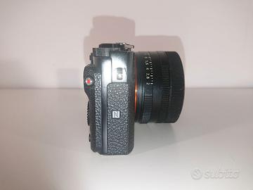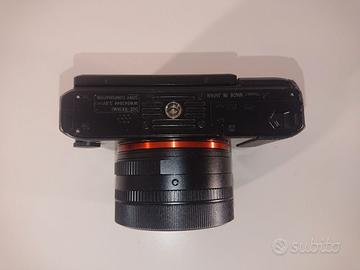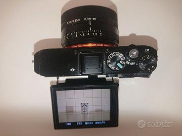 Fotocamera Sony RX1RII perfettamente funzionante, tenuta molto bene a parte pochi e impercettibili segni di usura su ghiera e spigoli (qualche punto sui lati un po' sverniciato, visibile solo da vicino e in foto). Nessuna ammaccatura o graffi. Schermo LCD pari al nuovo (verificato quando gli ho fatto sostituire il vetrino protettivo mesi fa). I meccanismi di estensione dello schermo offrono ancora la stessa frizione del nuovo. Ghiere come nuove. Ho sostituito il cavo del viewfinder in un centro riparazioni Sony (speso €180), e l'estensione del viewfinder funziona perfettamente. Sono compresi paraluce (Sony LHP-1, acquistabile anche sfuso in altro mio annuncio) e batteria originali, cavo USB e cavo ricarica, tappo dell'obiettivo Sony ma non è quello originale in metallo. ATTENZIONE: l'obiettivo ha due granelli (molto piccoli, molto soft, molto decentrati, già con il clear image zoom a 1.3 sono fuori inquadratura). Fino a f8 non si vedono neanche e iniziano a essere intuibili a f9 e poi visibili fra f10 e f11 (ma solo fotografando un foglio bianco, mentre nel normale utilizzo risulta difficile anche solo intuirli a f16). A causa del problema (invisibile nel normale utilizzo) preferirei consegna a mano, per verificare di persona quanto sopra. Disponibili foto a foglio bianco ISO100 tutte le aperture da f2 a f22 (file grossi, mi serve una email e vi giro il link). PREZZO NON TRATTABILE ma valuto eventuali permute solo con fotocamere Sony RX1R RX1 RX100M2 RX100M6 HX95 HX99 o con lenti Zeiss 55mm 1.8 o Zeiss 35mm.
