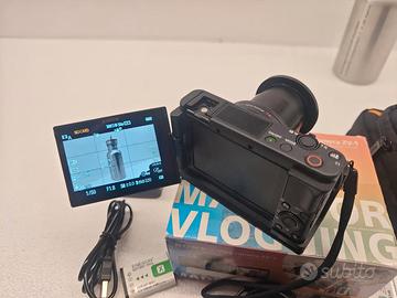 vendo la mia amata Sony ZV-1 Fotocamera/Videocamera 4K pensata per vlogging e fotografia di viaggio. Vendo per passaggio ad attrezzatura Full Frame. Questo modello è stato usato solo per 2 anni per realizzare video a matrimoni, quindi non ha scattato quasi nessuna foto. Oltre alla dotazione originale, includo 4 batterie e caricabatterie esterno a triplo slot aggiuntivo, una Piastra di supporto verticale a sgancio rapido L per treppiede che garantisce anche una maggiore presa in mano, una lente grandangolare ULANZI WL-1 18 mm con macro 10X (un obiettivo ausiliario che si monta sopra quello originale), una scheda SD Trascend da 64GB e una custodia morbida da trasporto (che contiene macchina e tutte le batterie). Tutto viene venduto in ottime condizioni senza botte, graffi o muffa e nella sua confezione originale con libretti di istruzioni e accessori.