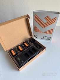Vendo principalmente il corpo macchina e l’obiettivo, mentre in regalo includo 3 batterie aggiuntive e un caricabatterie della K&F Concept, acquistati separatamente.