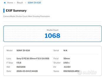 SONY ZV-E10 Vlog camera + obiettivo Sony Power Zoom 16-50 mm OSS stabilizzato – fotocamera Mirrorless acquistata da Mediaworld il 25/08/2025, in garanzia fino al 24/08/2027, con ulteriore estensione di garanzia Sony di un anno fino al 24/08/2028. Fotocamera Mirrorless e obiettivo Power Zoom praticamente nuovi (1068 scatti). Vendo per scarso utilizzo.