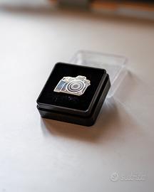 Spilla da collezione Nikon, nuova. La scatola presenta piccoli segni di usura visibili in foto, ma la spilla non è mai stata utilizzata.