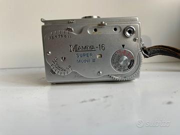 Raraspy camera. Mamiya super 16 mod. III. La casa giapponese produsse questa camera solo per l’anno 1959 in numero ridotto di esemplari. La camera è in ottime condizioni, mentre la custodia in pelle presenta i segni del tempo sul lato della cerniera. Oggetto da collezione