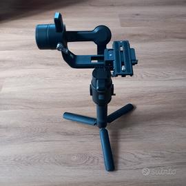 Stabilizzatore gimbal a tre assi progettato per fotocamere mirrorless, caratterizzato da una struttura leggera in magnesio e alluminio. In ottimo stato! * Capacità di Carico: 2,0 kg. * Autonomia: La batteria integrata da 2450 mAh offre fino a 11 ore di durata con una ricarica completa di circa 2,5 ore. * Dimensioni: 220 × 200 × 75 mm quando ripiegato; 370 × 165 × 150 mm quando operativo. * Connettività: Bluetooth 5.0 e porta USB-C. Funzioni: * ActiveTrack 3.0: Consente di montare uno smartphone sulla fotocamera per seguire automaticamente un soggetto con movimenti fluidi. * Force Mobile: Permette di controllare i movimenti del gimbal semplicemente ruotando e inclinando lo smartphone. * Sport Mode: Aumenta la reattività dei motori per seguire soggetti che si muovono molto velocemente. * 360 Roll: Consente una rotazione continua sull'asse di rollio per riprese creative a 360 gradi. * Altre Funzioni: Panorama, Timelapse, Motionlapse e Motion Control. * App gratuita.