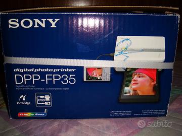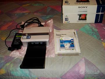 Sony picture station DPP-FP 35,stampante fotografica compatta termica a subimlazione a colori,capacità totale 20 fogli,stampa senza bordi,alimentazione AC 120/230 V.Dimensioni 17,5 X13,7X6 cm. peso 1 Kg. formato max 101 X 152 mm.interfaccia USB alta velocità,stampante in perfettissime condizioni come nuova,adoperata poche volte,eventualmente da vedere personalmente.