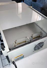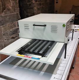 Box luce stampa per carte fotografiche BN ai sali d'argento normali e multigrade la stampa avviene con 2 possibilità una tipo bromografo usando piastra porta filtri a contatto fonte di luce , l'altra utilizzando le aste micrometriche per proiezione luce come un ingranditore ,ma senza uso di condensatori e lenti ,potenza luce sino a watt 1200 usa 4 lampade alogene lineari schermate con filtro dicroico ,possibile sostituirle con 4 lampade eguale potenza meno consumo a led .La stampa avviene per contatto negativo o lucido con la carta , qualità e contrasto ottimali elimina tutti i difetti di proiezione con obiettivi e condensatori ,fornisco box luce con maniglie misura 45x50 x20 completo di 4 lampade alogene lineari con diffusore dicroico ,ventola ,piastra plexi 40x50 porta filtri acetati scorrevole (marginatore timer e telaietti non fanno parte del fornito ) consiglio ritiro di persona pagamento alla consegna o bonifico anticipato posso spedire personalmente con corriere spese spedizione a parte