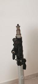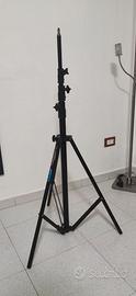 Stativo a treppiede con colonna centrale telescopica. Sezioni: 4 sezioni per la colonna centrale, che permettono una regolazione precisa dell'altezza. Caratteristiche: Spesso dotato di sistema "air cushion" (cuscinetto ad aria) per evitare che la luce cada bruscamente durante la discesa. Utilizzo: Ideale per sostenere flash da studio, luci LED o modificatori di luce come softbox. Altezza: A seconda del modello specifico, può raggiungere altezze variabili tra i 2 e i 3.8 metri.
