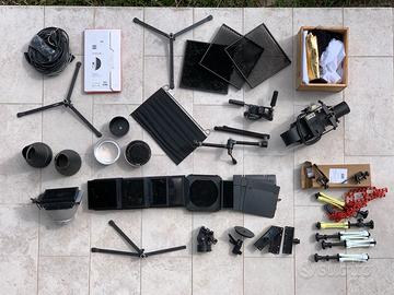Studio fotografico attrezzatura stativi softbox flash trigger Elinchrom Manfrotto fondali seguipersona parabole griglie bank cavalletti ecc. Vendo in blocco 1.500€ solo ritiro a mano in Cuneo centro.