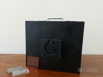 Pinhole autocostruita artigianalmente con multistrato nautico e verniciata, accetta i comuni chassis Fidelity 8x10 pollici 20x25cm. Lunghezza focale 165mm f250 foro su lastrina di ottone a laser. Per ulteriori informazioni basta chiedere. Ritiro o spedizione a carico dell'acquirente
