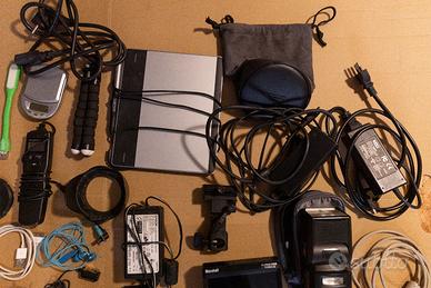 Vendo battery grip per canon 5d mark II (senza batterie) usato ma funzionante e, in blocco, aggiungo materiale di elettronica e accessori fotografici. Alcuni oggetti non sono funzionanti (ad esempio il flash a slitta Metz) e potrebbero essere riparati o usati per ricambi o da buttare, non ne ho certezza. Altri oggetti come i due mouse Apple non so se funzionano ancora ma è probabile che siano guasti. I cavi, gli alimentatori, la tavoletta wacom, il mouse piccolo nero, il lettore di schede cf Lexar funzionano. Vendo tutto in blocco a 75 euro e il prezzo non è trattabile. Spese di spedizione a carico di chi acquista.