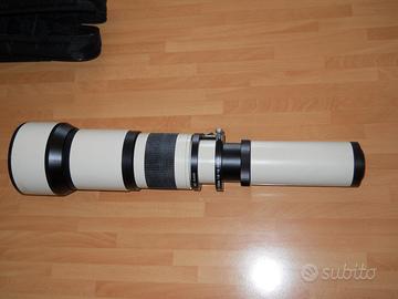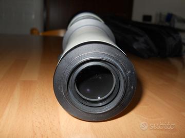 OTTIMO SUPER TELEOBIETTIVO PER FOTO A LUNGA DISTANZA E ANCHE PER ASTRONOMIA. ADATTABILE A REFLEX TRAMITE ANELLO ADATTATORE DA T2 VITE 42X0,75. LENTE ANTERIORE D 80 MM. OTTIME CONDIZIONI. CON ASTUCCIO E PARALUCE. NO TAPPI, PESA CIRCA DUE KG E VA USATO CON UN BUON TREPPIEDI. MESSA A FUOCO CON GHIERA CENTRALE. SCORRIMENTO DEL TUBO PER VARIARE LA FOCALE.