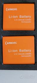 CARICABATTERIE E BATTERIE ACTION CAM Kit di batterie ricaricabili e caricatore USB portatile per ACTION CAM. Le batterie sono del tipo Li-ion da 3.7V e 1350 mAh possono andare per piccoli dispositivi tipo Action Cam. Batterie praticamente mai usate perché mi si è rotta la Action Cam dopo 1 mese. Connettore usb-c per collegamento a computer o base per presa a muro