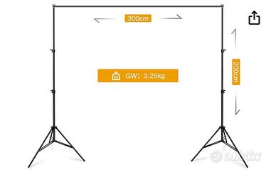 OMBAR 7x10ft/2x3m Supporto per Sfondo Fotografico Regolabile per Ritratto, Fotografia di Prodotti e Registrazione Video, Supporto Telescopico per Foto con 4 Morsetti per Sfondo e 2 Sacchi di Sabbia
