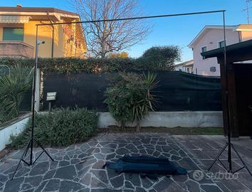 Vendo supporto in alluminio per sfondo in carta o tessuto con una pratica borsa per il trasporto 300 in altezza x 380 in larghezza cm, stabile e resistente