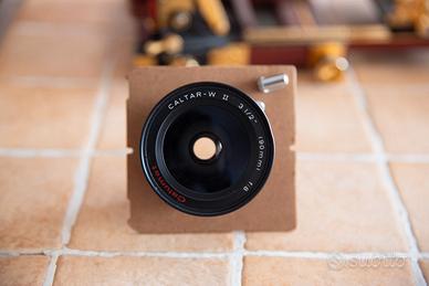 Vendo Tachihara 4x5, banco ottico in legno di alta qualità, in ottime condizioni. La fotocamera è perfettamente funzionante, con movimenti fluidi e soffietto in ottimo stato. Vetro smerigliato integro. Venduta come kit completo, pronta all’uso. Incluso nel prezzo: Corpo Tachihara 4x5 Obiettivo Caltar 190mm f/8 Secondo obiettivo su otturatore Copal No.1 4 chassis porta pellicola 4x5 Pellicole Polaroid 669 (scadute, non testate) Ideale per fotografia artistica e grande formato. Preferibile ritiro a mano, ma disponibile anche spedizione.