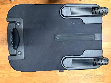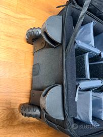 La SpeedRoller 2x è molto capiente e può contenere due reflex DSLR con 5–7 obiettivi. Inoltre, considerando che oggi la maggior parte dei fotografi viaggia con un computer, dispone anche di uno scomparto imbottito dedicato per un laptop fino a 17,3". Le tasche in rete Windowpane-Mesh di Tamrac, situate all’interno del coperchio principale, sono ideali per piccoli accessori come batterie di riserva, schede di memoria, filtri e simili. È possibile trasportare anche un treppiede grazie al sistema di aggancio QuickClip, che lo mantiene fissato, centrato ed equilibrato sulla parte frontale del trolley. Dimensioni: 52x32x35 cm