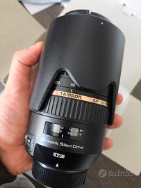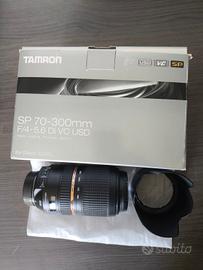 Teleobiettivo Tamron 70-300mm stabilizzato VC, autofocus veloce e silenzioso. Ottimo per foto sportive, animali e ritratti. Funziona perfettamente, pronto all’uso. Usato poche volte non presenta difetti né graffi di nessun tipo.
