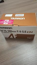 obiettivo Tamron AF 70-300 caratteristiche come da foto. comprato nuovo ed utilizzato una sola volta. condizioni come nuovo