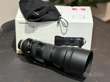 Ottimo zoom Tamron 150-600 G2 per Nikon, solo qualche piccolo segno per il normale uso più che altro sull’attacco. In scatola originale e sacchetto. Regalo cover mimetica.