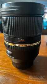 Tamron SP 24-70mm f/2.8 Di VC USD Attacco Nikon Obiettivo luminoso e stabilizzato, ideale per ritratti, paesaggi e reportage. Presente solo in difetto (foto) Ottime condizioni, completo di paraluce e tappi. Autofocus e stabilizzatore perfetti.