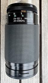 Vendo kit completo Tamron SP composto da: • Obiettivo Tamron SP 35-210mm f/3.5-4.2 BBAR MC Zoom versatile, ideale per ritratti, paesaggi e fotografia generale. Lenti pulite, meccanica fluida, ghiere scorrevoli senza giochi. • Tamron SP Flat-Field Tele-Converter 2X – Modello 01F (Adaptall-2) Raddoppia la focale mantenendo ottima qualità d’immagine. Compatibile con tutti gli obiettivi Adaptall-2. • Accessori inclusi: • Tappi anteriori e posteriori originali • Custodia Tamron Compatibilità: Il sistema Adaptall-2 permette di utilizzare questi obiettivi su molte fotocamere moderne tramite un adattatore compatibile (non incluso). Basta scegliere l’adattatore corretto per la propria macchina fotografica. Condizioni: Tutto in ottimo stato estetico e funzionale. Pronto all’uso. Perfetto per collezionisti, appassionati di vintage o per chi cerca un telezoom di qualità con sistema Adaptall-2.