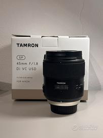 Lente Tamron 45mm f/1.8 per Nikon e compstibili, perfetta per ritratti e ottimo stacco focale.