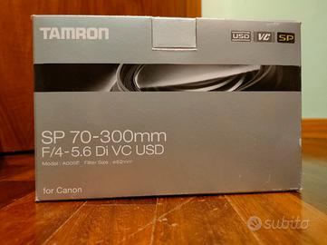 obbiettivo Tamron SP 70 - 300mm F/4 - 5.6 Di VC USD. condizione ottime come si può vedere dalle foto. Obbiettivo con attacco per Canon