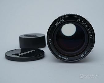 Tamron zoom 35 - 135 f3.5-4.5 per fotocamera Olympus OM analogica. Lenti perfette, qualche segno di usura. Attenzione: l'ultima foto mostra come sta l'obiettivo su OM1, la camera NON è in vendita.