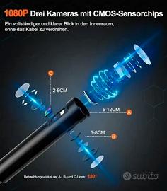 Telecamera Endoscopica a 3 Lenti & Display IPS 5 ": Visione Full HD 1080p! Lente A (fuoco 5-12cm), Lente B (3-8cm) e Lente C (2-6cm) per diagnosi auto, tubi o muri. Display IPS vivido senza Wi-Fi/app – pronto all'uso. 🌊 Endoscopio Professionale IP67 con Cavo Semi-Rigido 15m: Affronta scarichi profondi, motori allagati o intercapedini! Questa Telecamera Ispezione Tubi ha cavo impermeabile 15m, irrigidito per curve strette e 8 LED regolabili. Essenziale per idraulici e meccanici. 💡 Visuale Multi-Angolo & Split-Screen: Ispezioni complete a 360°! Pulsante 180° per cambiare angolazione o modalità schermo diviso. Questa Telecamera Ispezione localizza guasti motore, danni tubi o crepe strutturali in pochi secondi. 🔋 Batteria Durevole & Accessori Completi: Batteria 2800mAh e scheda 32GB per registrazioni. Design ergonomico, valigetta, ganci e cavo USB-C rendono questa Endoscopio un kit mobile perfetto – per pronto intervento.