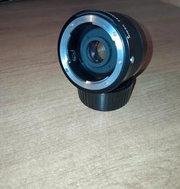 Duplicatore che raddoppia la focale in uso con la sola perdita di due diaframmi. Le immagini finali sono ottime, specialmente se utilizzato con ottiche fisse pre-AI e AI. Se poi venisse mpiegato su una macchina con sistema APS-C avremmo il fattore x 1,5 da considerare. L'accessorio e' in ottimo stato. Viene fornito con i due tappi ed un sacchetto di finta pelle (non in foto).