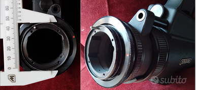 Obiettivo con attacco a baionetta Novoflex A-Mount (femmina sull'obiettivo) e adattatore ZIV (Zeiss Icarex Voigtlander/Zeiss Ikon) sostituibile con altri (sul mercato si trovano adattatori per Canon EOS, Sony, Fuji, Leica, prodotti da NovoFlexus). Qualche segno di usura sulla verniciatura, lenti in ottime condizioni, niente graffi o muffa.